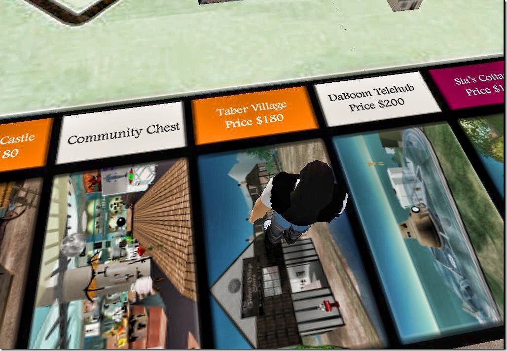 Valfaroth Grimm, a magnificent builder and scriptor created a Monopoly Game which he placed on Cayman Island a private Estate owned by Evie Fairchild. In those days Linden Lab had not yet offered private regions for sale to the public but Evie won the use of the region floating off to the north of the mainland for a year.